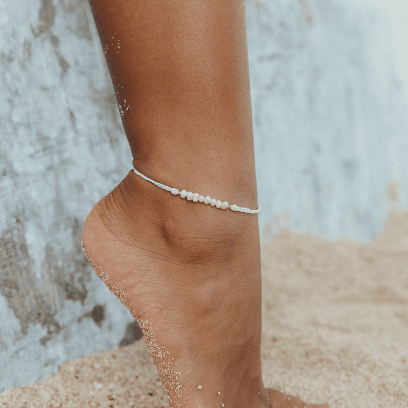 Lahaina Pearl Handmade Anklet - White